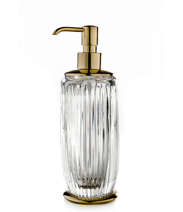 Дозатор для жидкого мыла, 3SC, Elegance, механический (нажимной), ширина, мм-75, высота, мм-230, тип установки-настольный (свободностоящий), материал колбы-хрусталь, цвет колбы-прозрачный, цвет дозатора-золото матовое Дозатор для жидкого мыла, 3SC, Elegance, шв 75*230, цвет дозатора-золото матовое