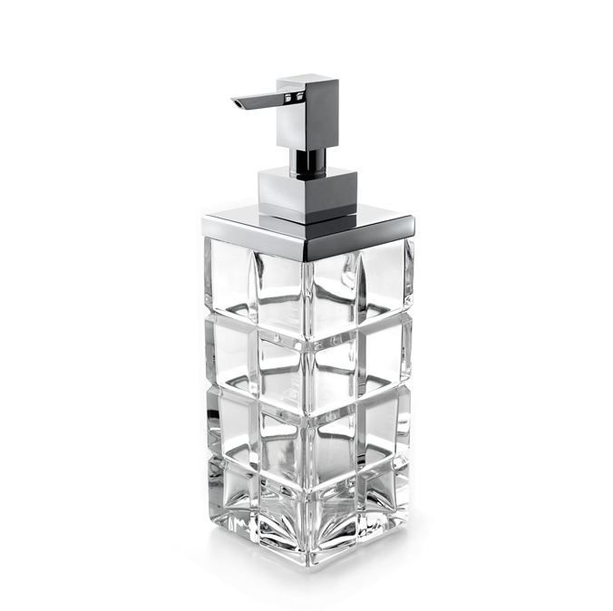 Дозатор для жидкого мыла, 3SC, Palace, механический (нажимной), ширина, мм-75, глубина, мм-75, высота, мм-230, тип установки-настольный (свободностоящий), материал колбы-хрусталь, цвет колбы-прозрачный, цвет дозатора-никель сатинированный матовый Дозатор для жидкого мыла, 3SC, Palace, шгв 75*75*230, цвет дозатора-никель сатинированный матовый