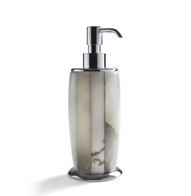 Дозатор, 3SC, Rigato, механический (нажимной), ширина, мм-80, высота, мм-210, тип установки-настольный (свободностоящий), цвет колбы-алебастр, цвет дозатора-никель сатинированный полированный Дозатор, 3SC, Rigato, шв 80*210, цвет дозатора-никель сатинированный полированный