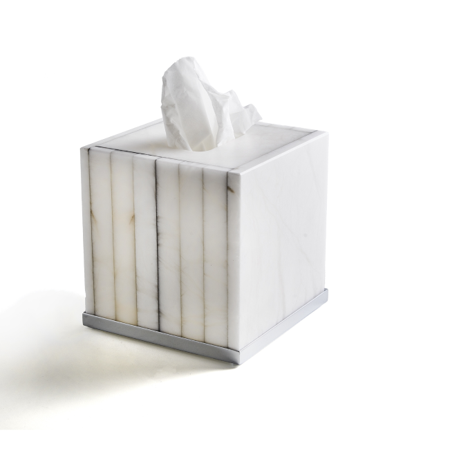 Контейнер для бумажных салфеток, 3SC, Rigato, ширина, мм-130, глубина, мм-130, высота, мм-140, тип установки-настольный (свободностоящий), цвет-алебастр/никель сатинированный полированный Контейнер для бумажных салфеток, 3SC, Rigato, шгв 130*130*140, цвет-алебастр/никель сатинированный полированный