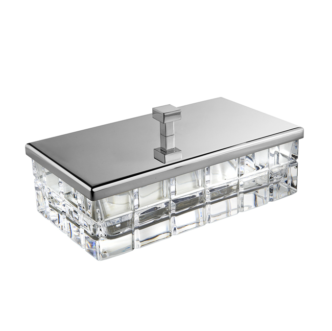 Контейнер, 3SC, Palace, настольный, с крышкой, ширина, мм-230, глубина, мм-125, высота, мм-100, материал-прозрачный хрусталь, цвет-никель сатинированный черный матовый Контейнер, 3SC, Palace, настольный, шгв 230*125*100, цвет-никель сатинированный черный матовый