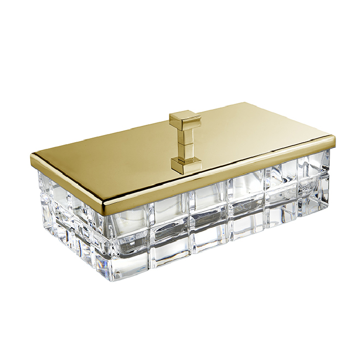 Контейнер, 3SC, Palace, настольный, с крышкой, ширина, мм-230, глубина, мм-125, высота, мм-100, материал-прозрачный хрусталь, цвет-золото Контейнер, 3SC, Palace, настольный, шгв 230*125*100, цвет-золото
