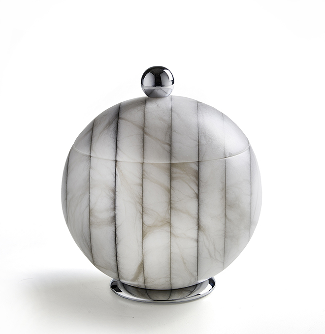 Контейнер, 3SC, Rigato, настольный, с крышкой, ширина, мм-150, высота, мм-180, цвет-алебастр/хром Контейнер, 3SC, Rigato, настольный, шв 150*180, цвет-алебастр/хром