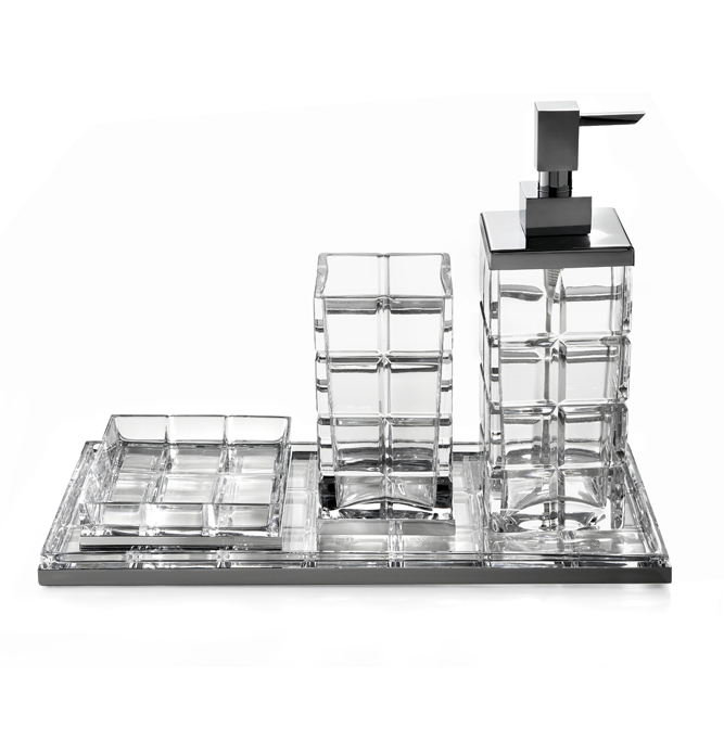Набор аксессуаров, 3SC, Palace, настольный, в комплекте-лоток, мыльница, стакан, дозатор, ширина, мм-350, глубина, мм-160, высота, мм-250, материал-прозрачный хрусталь, цвет-никель черный матовый Набор аксессуаров, 3SC, Palace, настольный, лоток, мыльница, стакан, дозатор, шгв 350*160*250, цвет-прозрачный хрусталь/никель черный матовый
