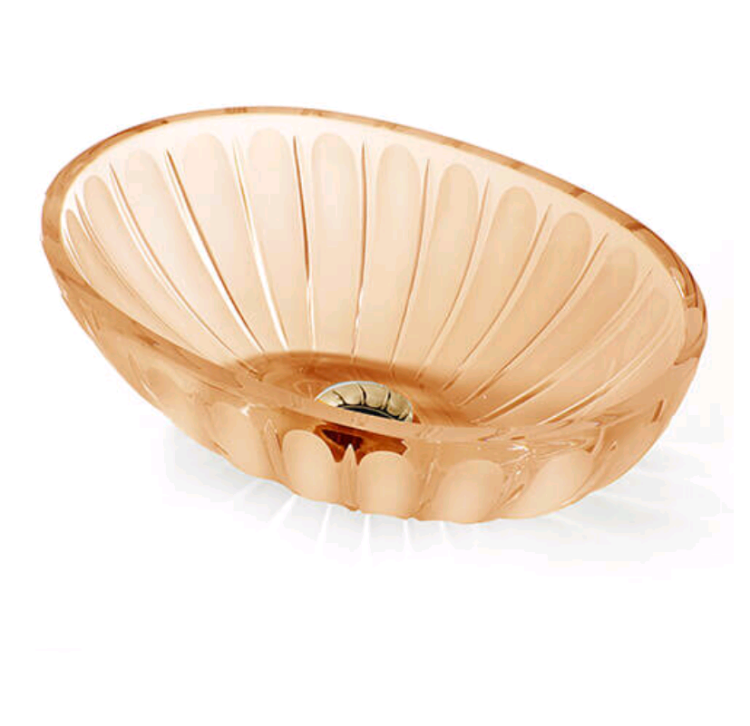 Раковина, 3SC, Montblanc Ovale, ширина, мм-410, глубина, мм-280, высота, мм-150, тип установки-накладной (настольный), отверстия для смесителя-отсутствуют, без перелива, в комплекте с латунным кольцом-основанием и латунным сливом, цвет металлической фурнитуры-Gold Polished 24Kt, материал-хрусталь, цвет-Ambra Раковина, 3SC, Montblanc Ovale, шгв 410*280*150, отверстия для смесителя-отсутствуют, цвет-Ambra
