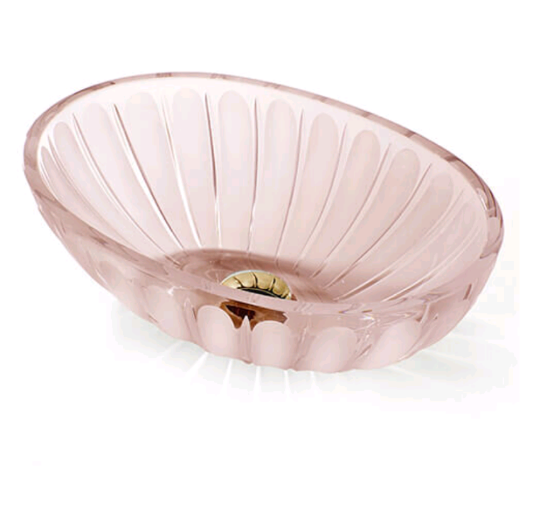 Раковина, 3SC, Montblanc Ovale, ширина, мм-410, глубина, мм-280, высота, мм-150, тип установки-накладной (настольный), отверстия для смесителя-отсутствуют, без перелива, в комплекте с латунным кольцом-основанием и латунным сливом, цвет металлической фурнитуры-Gold Polished 24Kt, материал-хрусталь, цвет-Rosa Раковина, 3SC, Montblanc Ovale, шгв 410*280*150, отверстия для смесителя-отсутствуют, цвет-Rosa