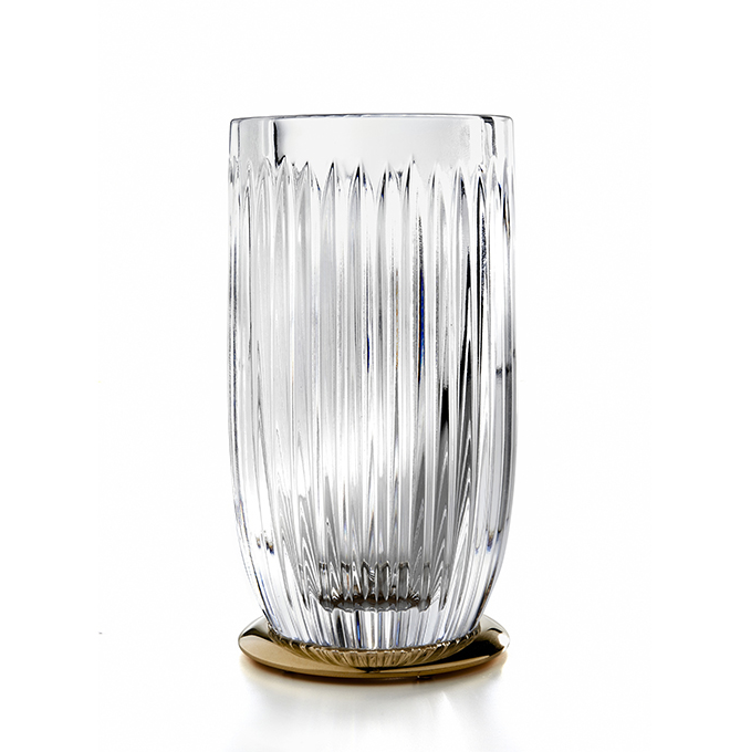 Стакан, 3SC, Elegance, одинарный, ширина, мм-75, высота, мм-145, настольный (свободностоящий), материал стакана-хрусталь, без креплений, цвет-прозрачный хрусталь/золото матовое Стакан, 3SC, Elegance, шв 75*145, цвет-прозрачный хрусталь/золото матовое
