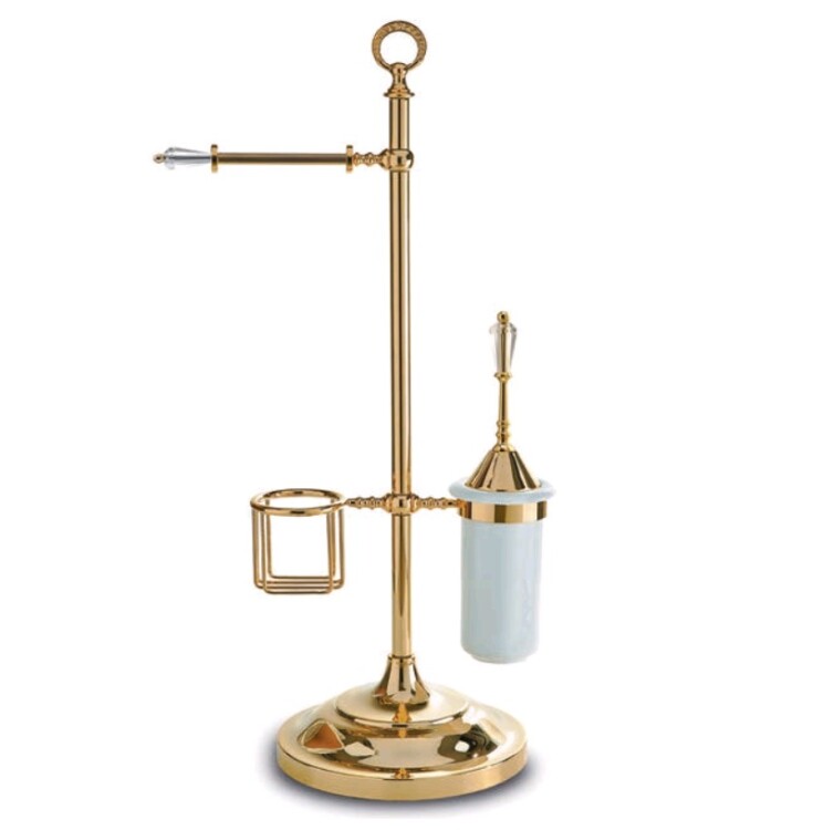 Стойка, 3SC, Boheme, напольная, ширина, мм-250, глубина, мм-350, высота, мм-800, с дежателем туалетной бумаги без крышки, держателем для телефона и ёршиком для унитаза: цвет колбы-белый, материал держателя-металл, цвет-золото (Gold, Polished Gold) Стойка, 3SC, Boheme, шгв 250*350*800, с дежателем туалетной бумаги, держателем для телефона и ёршиком для унитаза, цвет-золото