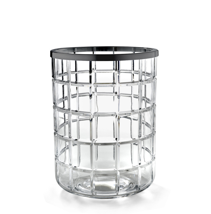 Урна, 3SC, Palace, без крышки, ширина, мм-200, глубина, мм-200, высота, мм-280, тип установки-напольный, материал-прозрачный хрусталь, цвет-никель сатинированный черный матовый Урна, 3SC, Palace, шгв 200*200*280, цвет-никель сатинированный черный матовый