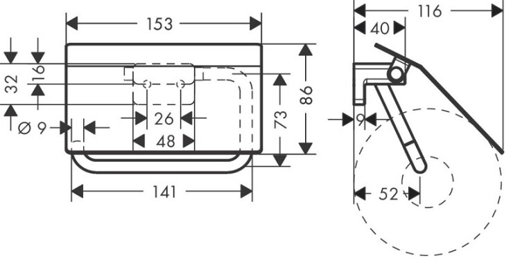 Бумагодержатель, Hansgrohe, AddStoris, с крышкой, ширина, мм-141, глубина, мм-52, высота, мм-86, тип установки-настенный, крепления в комплекте, цвет-шлифованный черный хром Бумагодержатель, Hansgrohe, AddStoris, шгв 141*52*86, цвет-шлифованный черный хром