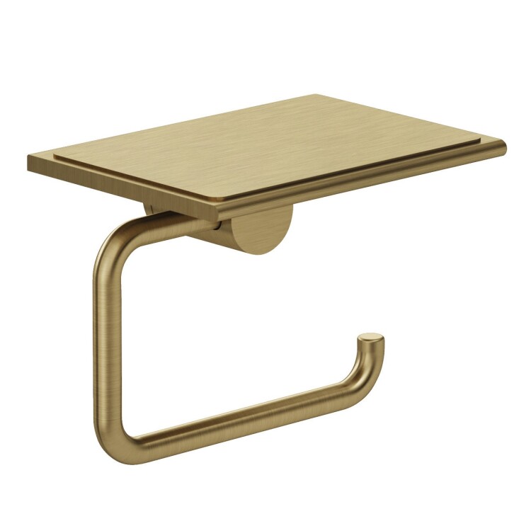 Бумагодержатель, Kludi, VELA R, без крышки, с полкой, ширина, мм-139, глубина, мм-100, высота, мм-111, тип установки-настенный, крепления в комплекте, цвет-Brushed Gold Бумагодержатель, Kludi, VELA R, без крышки, с полкой, шгв 139*100*111, цвет-Brushed Gold