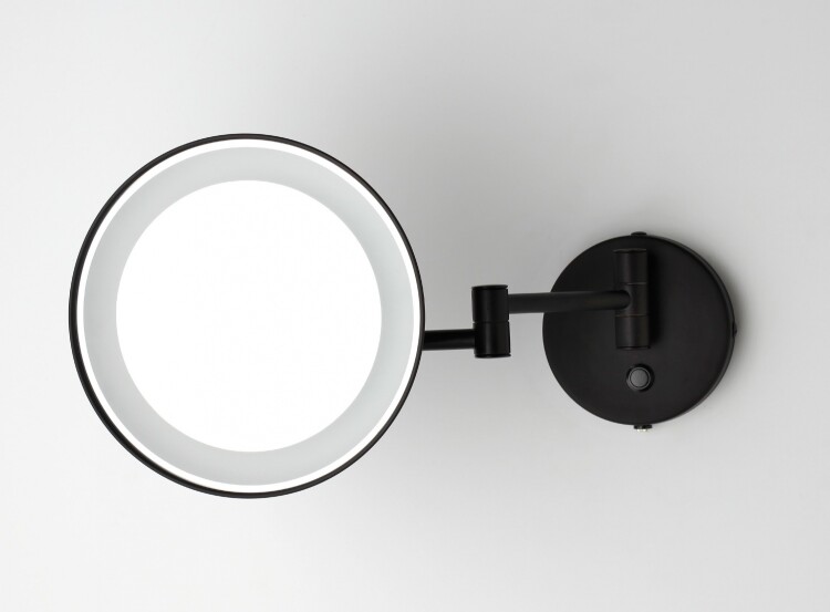 Косметическое зеркало, Bertocci, Vanity, круглое, поворотное, размер зеркала (ш x в), мм-235*235, тип установки-настенный, с подсветкой, с выключателем, увеличение, х-3 раза, цвет-черный матовый Косметическое зеркало, Bertocci, Vanity, с подсветкой, цвет-черный матовый