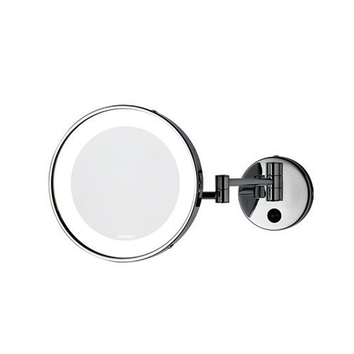 Косметическое зеркало, Bertocci, Vanity, круглое, поворотное, размер зеркала (ш x в), мм-235*235, тип установки-настенный, с подсветкой, с выключателем, увеличение, х-3 раза, цвет-хром Косметическое зеркало, Bertocci, Vanity, с подсветкой, цвет-хром