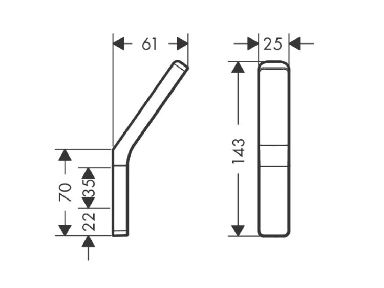 Крючок, Hansgrohe, Axor, одинарный, ширина, мм-25, глубина, мм-61, высота, мм-143, тип установки-настенный, материал-металл, цвет-шлифованное золото Крючок, Hansgrohe, Axor, шгв 25*61*143, цвет-шлифованное золото