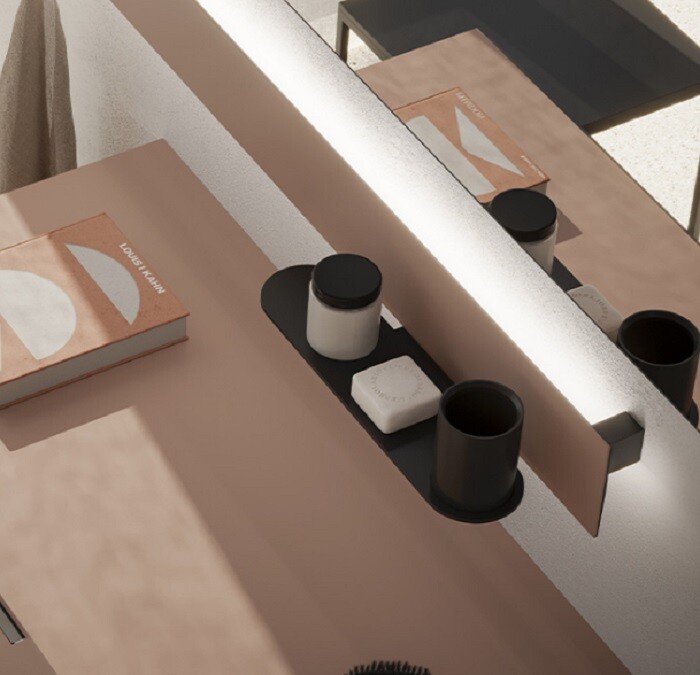 Набор аксессуаров, ARBI, Reed, в наборе-полка, стакан справа, ширина, мм-400, глубина, мм-100, высота, мм-106, тип установки-на штангу, материал-алюминий, цвет-черный Набор аксессуаров, ARBI, Reed, полка + стакан справа, шгв 400*100*106, цвет-черный