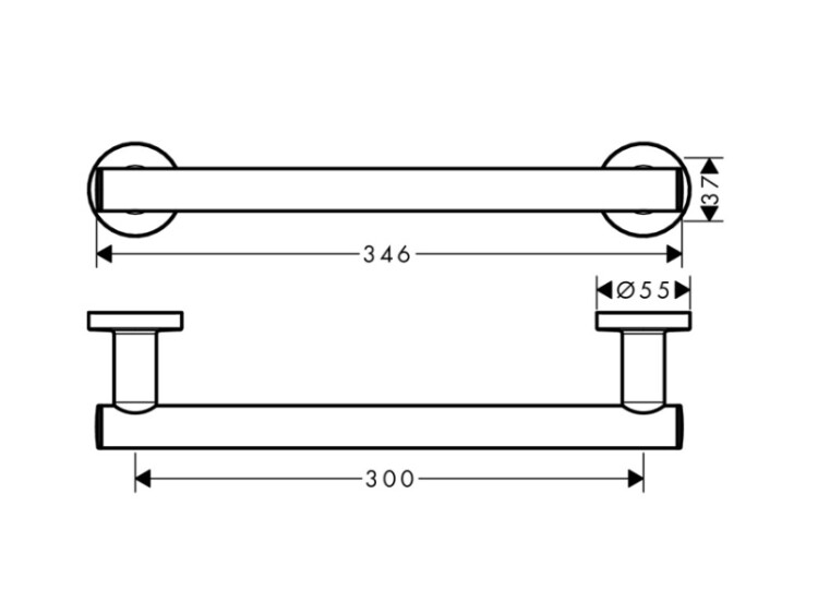 Поручень, Hansgrohe, Logis Universal, ширина, мм-300, высота, мм-55, тип установки-настенный, материал-металл, цвет-хром Поручень, Hansgrohe, Logis Universal, шв 300*55, цвет-хром