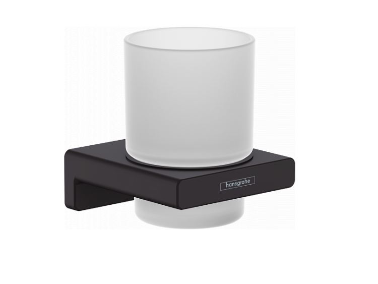 Стакан, Hansgrohe, AddStoris, одинарный, ширина, мм-81, глубина, мм-91, высота, мм-94, настенный, материал стакана-стекло матовое, материал держателя-металл, крепления в комплекте, цвет-черный матовый Стакан, Hansgrohe, AddStoris, шгв 81*91*94, цвет-черный матовый