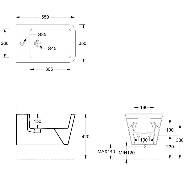 Биде, Alice, Hide, тип установки-подвесной, ширина, мм-350, глубина, мм-550, высота, мм-285, форма чаши-прямоугольная, отверстия для смесителя-1, материал-керамика, вид грязеотталкивающего покрытия-Aliglaze+, крепления в комплекте, без сливного механизма, цвет-черный матовый Биде, Alice, Hide, подвесной, шгв 350*550*285, Aliglaze+, с набором для крепления, цвет-черный матовый