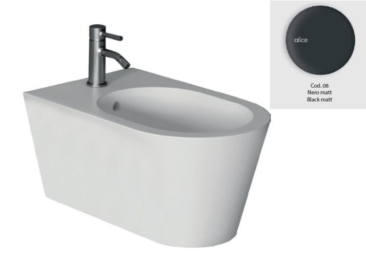 Биде, Alice, Hide, тип установки-подвесной, ширина, мм-370, глубина, мм-570, высота, мм-300, форма чаши-овальная, отверстия для смесителя-1, материал-керамика, вид грязеотталкивающего покрытия-Aliglaze+, без креплений, цвет-черный матовый Биде, Alice, Hide, подвесной, шгв 370*570*300, Aliglaze+, цвет-черный матовый