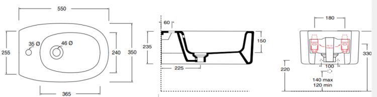 Биде, Alice, Idilla, тип установки-подвесной, ширина, мм-350, глубина, мм-550, высота, мм-235, форма чаши-овальная, отверстия для смесителя-1, материал-керамика, с набором для крепления "Fischer WB-KliX", донный клапан-необходимо заказать, цвет-белый Биде, Alice, Idilla, подвесной, шгв 350*550*235, отверстия для смесителя-1, цвет-белый