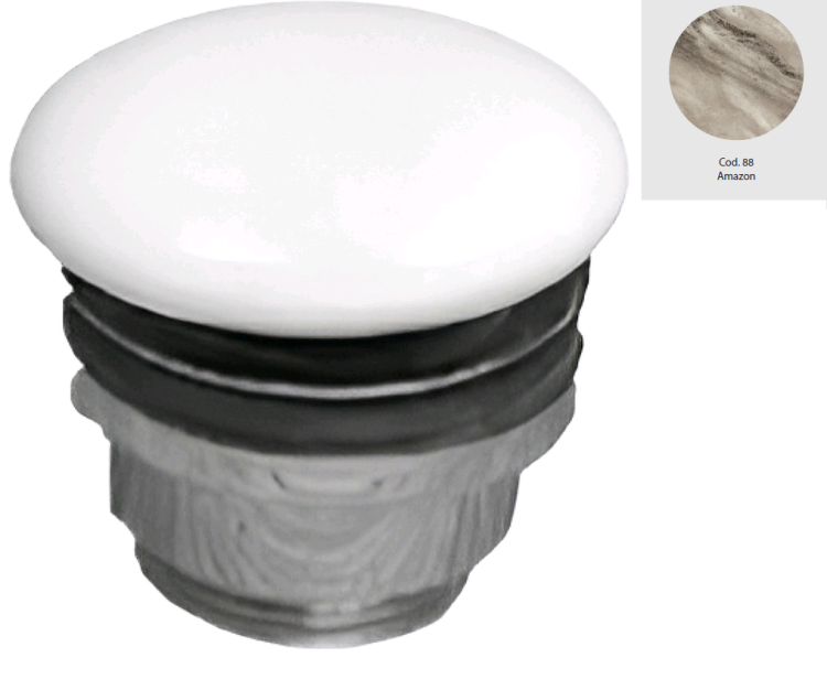 Донный клапан, Alice, для раковин, незапираемый, форма крышки-круглая, материал крышки-керамика, цвет-Amazon мрамор Донный клапан, Alice, для раковин, цвет-Amazon мрамор
