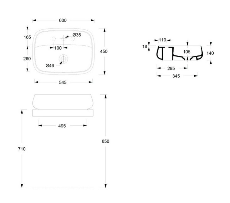 Раковина, Alice, NUR, Plan, ширина, мм-600, глубина, мм-450, высота, мм-150, тип установки-накладной (настольный), отверстия для смесителя-1, без перелива, донный клапан-необходимо заказать, материал-керамика, вид грязеотталкивающего покрытия-Aliglaze+, цвет-белый Раковина, Alice, NUR, Plan, шгв 600*450*150, отверстия для смесителя-1, Aliglaze+, цвет-белый