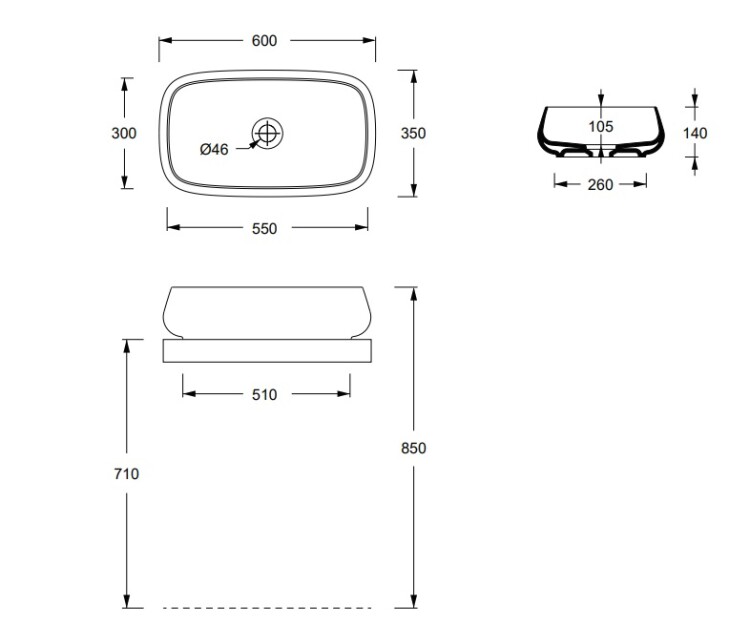 Раковина, Alice, NUR, ширина, мм-600, глубина, мм-350, высота, мм-140, тип установки-накладной (настольный), отверстия для смесителя-отсутствуют, без перелива, донный клапан-необходимо заказать, материал-керамика, вид грязеотталкивающего покрытия-Aliglaze+, цвет-белый Раковина, Alice, NUR, шгв 600*350*140, отверстия для смесителя-отсутствуют, Aliglaze+, цвет-белый
