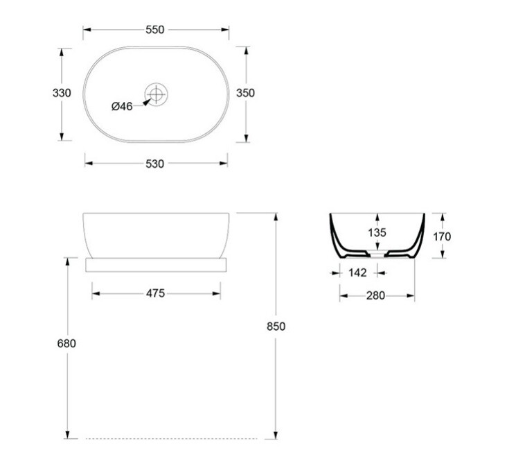 Раковина, Alice, Unica, ширина, мм-550, глубина, мм-350, высота, мм-170, тип установки-накладной (настольный), отверстия для смесителя-отсутствуют, без перелива, донный клапан-необходимо заказать, материал-керамика, вид грязеотталкивающего покрытия-Aliglaze+, цвет-белый Раковина, Alice, Unica, шгв 550*350*170, отверстия для смесителя-отсутствуют, Aliglaze+, цвет-белый