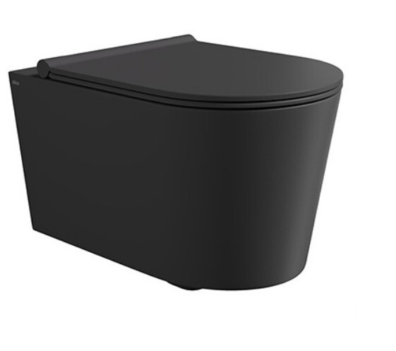 Унитаз, Alice, Form, безободковый (с открытым смывным краем), тип установки-подвесной, ширина, мм-350, глубина, мм-500, высота, мм-375, форма чаши-овальная, выпуск-горизонтальный, материал-керамика, сиденье-необходимо заказать, вид грязеотталкивающего покрытия-Aliglaze+, без креплений, цвет-черный матовый Унитаз, Alice, Form, подвесной, шгв 350*500*375, Aliglaze+, цвет-черный матовый