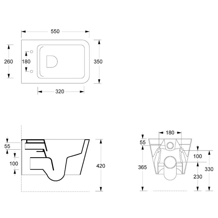 Унитаз, Alice, Hide, безободковый (с открытым смывным краем), тип установки-подвесной, ширина, мм-350, глубина, мм-550, высота, мм-345, форма чаши-прямоугольная, выпуск-горизонтальный, материал-керамика, сиденье-необходимо заказать, вид грязеотталкивающего покрытия-Aliglaze+, без креплений, цвет-белый матовый Унитаз, Alice, Hide, подвесной, шгв 350*550*345, Aliglaze+, цвет-белый матовый