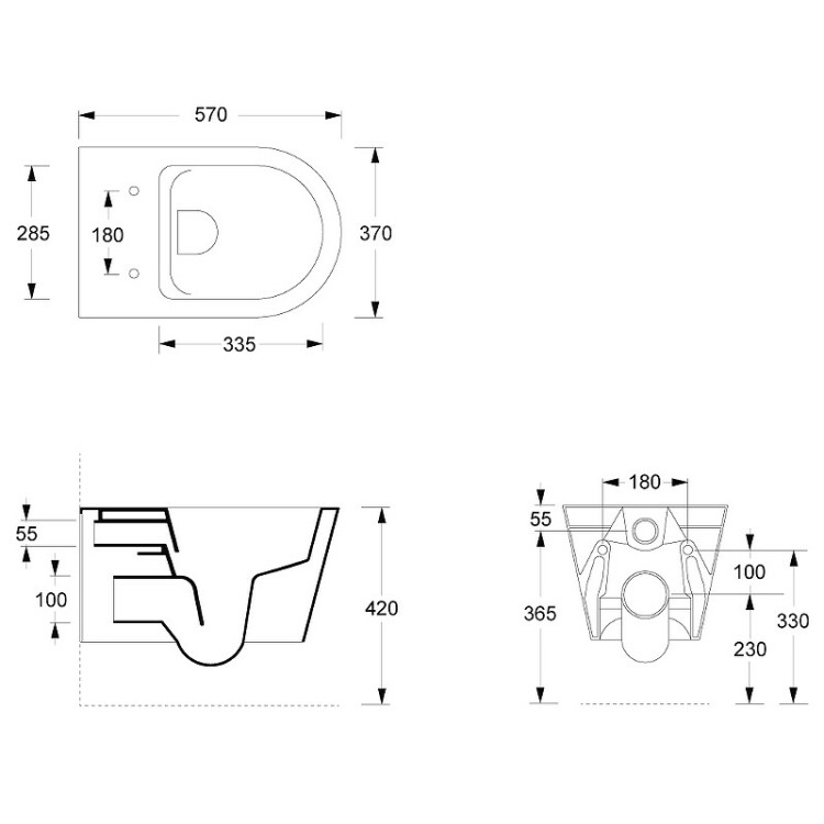 Унитаз, Alice, Hide, безободковый (с открытым смывным краем), тип установки-подвесной, ширина, мм-370, глубина, мм-570, высота, мм-345, форма чаши-овальная, выпуск-горизонтальный, материал-керамика, сиденье-необходимо заказать, вид грязеотталкивающего покрытия-Aliglaze+, без креплений, цвет-белый Унитаз, Alice, Hide, подвесной, шгв 370*570*345, Aliglaze+, цвет-белый