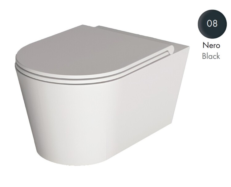 Унитаз, Alice, Hide, безободковый (с открытым смывным краем), тип установки-подвесной, ширина, мм-370, глубина, мм-570, высота, мм-345, форма чаши-овальная, выпуск-горизонтальный, материал-керамика, сиденье-необходимо заказать, вид грязеотталкивающего покрытия-Aliglaze+, без креплений, цвет-черный матовый Унитаз, Alice, Hide, подвесной, шгв 370*570*345, Aliglaze+, цвет-черный матовый