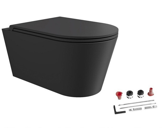 Унитаз, Alice, Hide, безободковый (с открытым смывным краем), тип установки-подвесной, ширина, мм-370, глубина, мм-570, высота, мм-345, форма чаши-овальная, выпуск-горизонтальный, материал-керамика, сиденье и крышка с микролифтом-в комплекте, вид грязеотталкивающего покрытия-Aliglaze+, крепления в комплекте, цвет-черный матовый Унитаз, Alice, Hide, подвесной, шгв 370*570*345, Aliglaze+, с сиденьем, с набором для крепления, цвет-черный матовый
