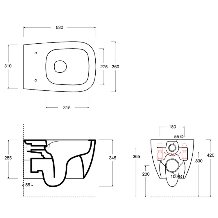 Унитаз, Alice, Wunder, безободковый (с открытым смывным краем), смыв-торнадо aliFlush+, тип установки-подвесной, ширина, мм-360, глубина, мм-530, высота, мм-345, форма чаши-прямоугольная, выпуск-горизонтальный, материал-керамика, сиденье-необходимо заказать, вид грязеотталкивающего покрытия-Aliglaze+, без сливного механизма, без креплений, цвет-белый Унитаз, Alice, Wunder, подвесной, шгв 360*530*345, Aliglaze+, цвет-белый