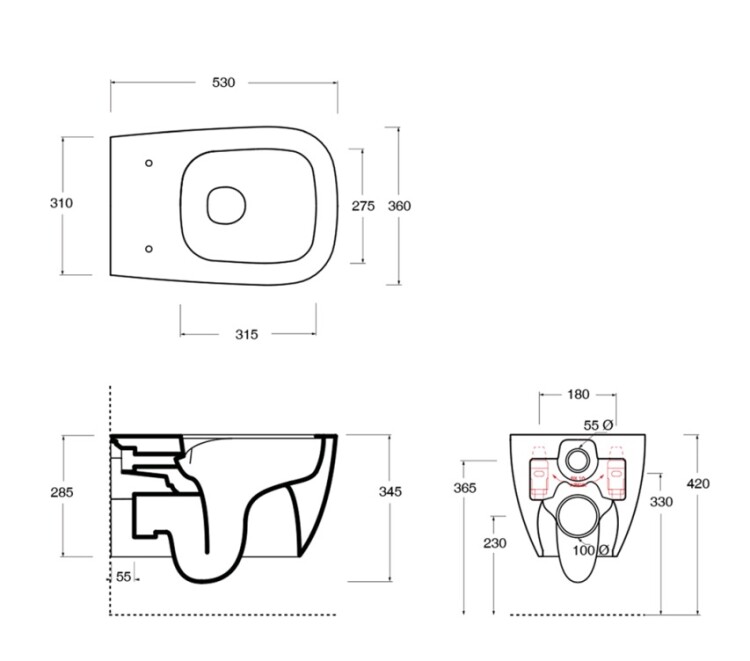 | Вид унитаза | безободковый (с открытым смывным краем) |