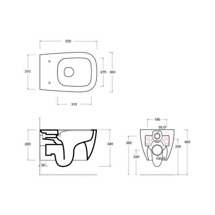 Унитаз, Alice, Wunder, безободковый (с открытым смывным краем), смыв-торнадо aliFlush+, тип установки-подвесной, ширина, мм-360, глубина, мм-530, высота, мм-345, форма чаши-прямоугольная, выпуск-горизонтальный, материал-керамика, сиденье-необходимо заказать, вид грязеотталкивающего покрытия-Aliglaze+, без сливного механизма, без креплений, цвет-чёрный матовый Унитаз, Alice, Wunder, подвесной, шгв 360*530*345, Aliglaze+, цвет-чёрный матовый