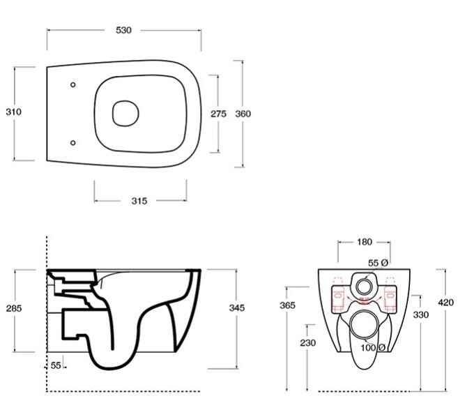 | Бачок | необходима система инсталляции, скрытый бачок |