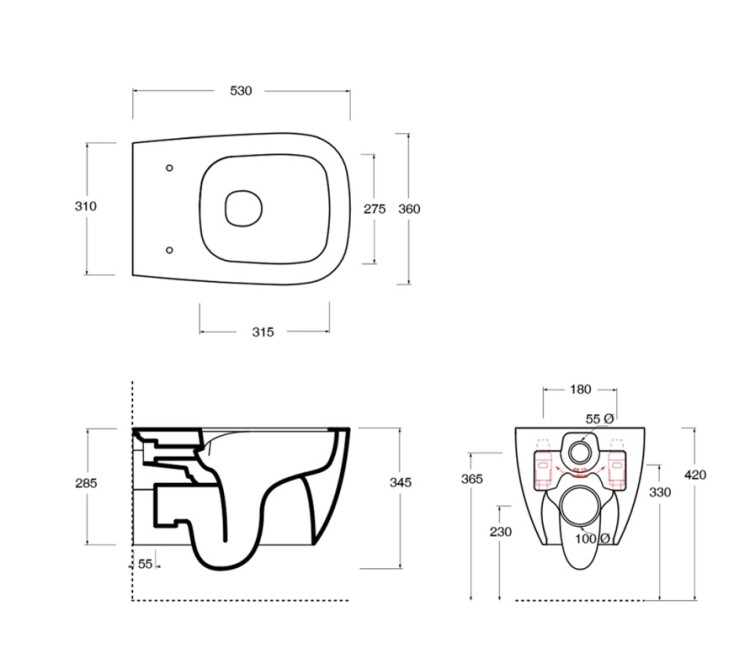 Вид унитаза | безободковый (с открытым смывным краем) |