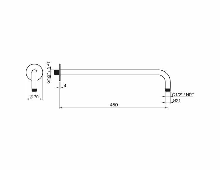 Держатель верхнего душа, Almar, 316 Stalnless Steel, вид-настенный, вынос, мм-450, с круглым отражателем, цвет-сталь нержавеющая Держатель верхнего душа, Almar, 316 Stalnless Steel, цвет-сталь нержавеющая (Товар заказной, возврату не подлежит)