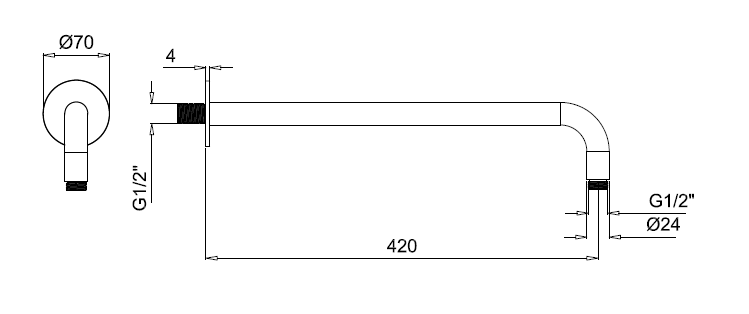 Держатель верхнего душа, Almar, Shower Arms, вид-настенный, вынос, мм-420, с круглым отражателем, цвет-Gold Polished PVD Держатель верхнего душа, Almar, Shower Arms, цвет-Gold Polished PVD (Товар заказной, возврату не подлежит)
