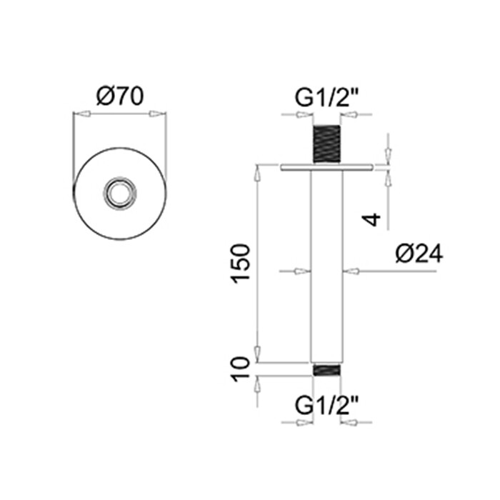 Держатель верхнего душа, Almar, Shower Arms, вид-потолочный, вынос, мм-150, с круглым отражателем, цвет-High Brass Brushed PVD Держатель верхнего душа, Almar, Shower Arms, цвет-High Brass Brushed PVD (Товар заказной, возврату не подлежит)