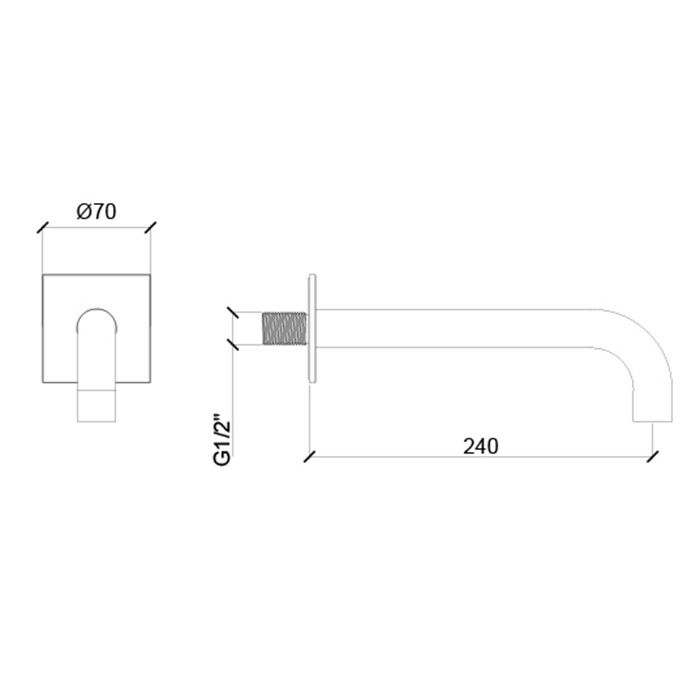Излив, Almar, Waterfalls, настенный, вынос излива, мм-240, стандарт подводки-1/2", с квадратным отражателем, цвет-High Brass Brushed PVD Излив, Almar, Waterfalls, с квадратным отражателем, цвет-High Brass Brushed PVD (Товар заказной, возврату не подлежит)