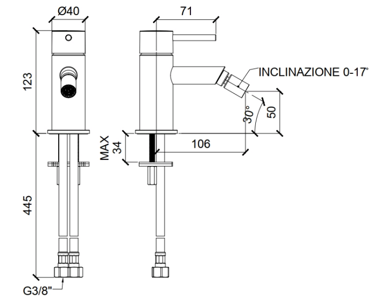 Смеситель для биде, Almar, тип открывания воды-однорычажный, тип регулирования воды-керамический картридж, отверстия для монтажа-1, высота, мм-123, вынос излива, мм-106, материал ручки-металл, цвет ручки-в цвет смесителя, донный клапан-отсутствует, тип подводки-гибкая, стандарт подвода воды-3/8", цвет-никель брашированный Смеситель для биде, Almar, цвет-никель брашированный (Товар заказной, возврату не подлежит)