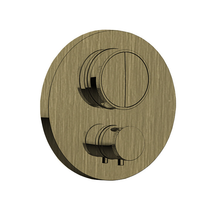 Смеситель для душа, Almar, Core, тип открывания воды-нажимной (кнопки), тип регулирования воды-термостатический картридж, монтаж-настенный встраиваемый, отверстия для монтажа-1, внутренняя часть-необходимо заказать, для 2-х потребителей, цвет-High Brass Brushed PVD Смеситель для душа, Almar, Core, цвет-High Brass Brushed PVD (Товар заказной, возврату не подлежит)