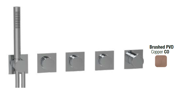 Смеситель для душа, Almar, Modular Push, на 3 потребителя, тип открывания воды-вентильный, тип регулирования воды-термостатический картридж, монтаж-настенный встраиваемый, отверстия для монтажа-5, внутренняя часть-необходимо заказать, цвет-Copper Brushed PVD Смеситель для душа, Almar, Modular Push, на 3 потребителя, цвет-Copper Brushed PVD (Товар заказной, возврату не подлежит)