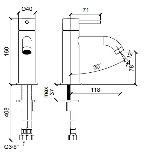 Смеситель для раковины, Almar, тип открывания воды-однорычажный, тип регулирования воды-керамический картридж, монтаж-на раковину/столешницу, отверстия для монтажа-1, высота, мм-160, вынос излива, мм-118, тип излива-неподвижный, донный клапан-отсутствует, тип подводки-гибкая, стандарт подвода воды-3/8", цвет-белый матовый Смеситель для раковины, Almar, цвет-белый матовый (Товар заказной, возврату не подлежит)