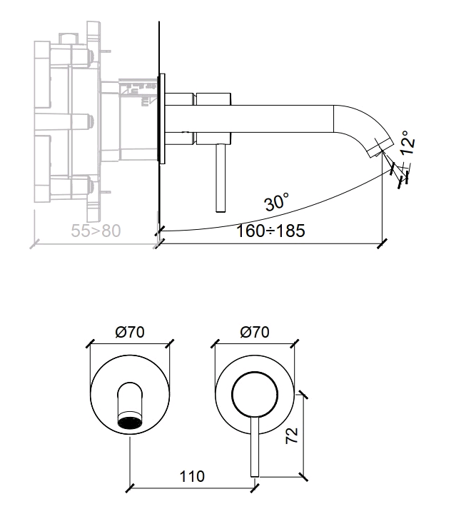 Смеситель для раковины, Almar, тип открывания воды-однорычажный, тип регулирования воды-керамический картридж, монтаж-настенный встраиваемый, отверстия для монтажа-2, высота, мм-70, вынос излива, мм-185, тип излива-неподвижный, донный клапан-отсутствует, тип подводки-жесткая, внутренняя часть-необходимо заказать, цвет-Brushed Nickel Смеситель для раковины, Almar, цвет-Brushed Nickel (Товар заказной, возврату не подлежит)