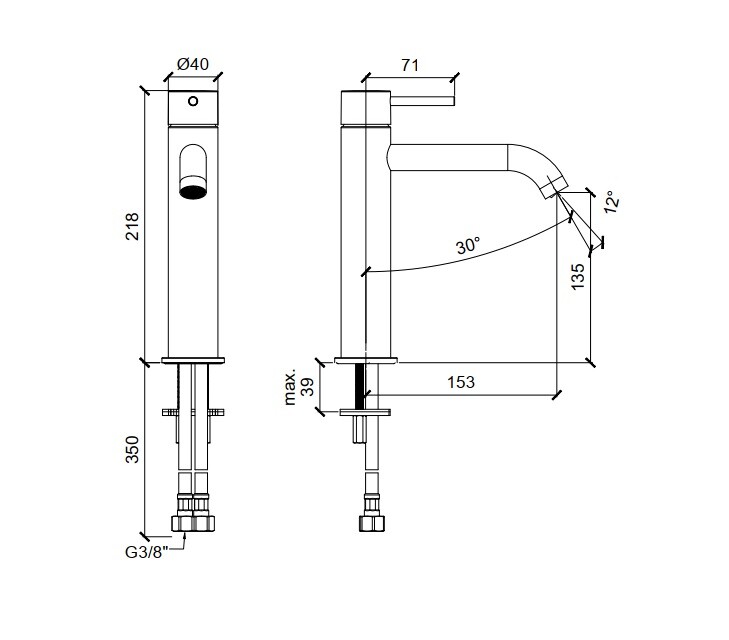 Смеситель для раковины, Almar, тип открывания воды-однорычажный, тип регулирования воды-керамический картридж, монтаж-на раковину/столешницу, отверстия для монтажа-1, высота, мм-218, вынос излива, мм-153, тип излива-неподвижный, донный клапан-отсутствует, тип подводки-гибкая, стандарт подвода воды-3/8", цвет-хром Смеситель для раковины, Almar, цвет-хром (Товар заказной, возврату не подлежит)
