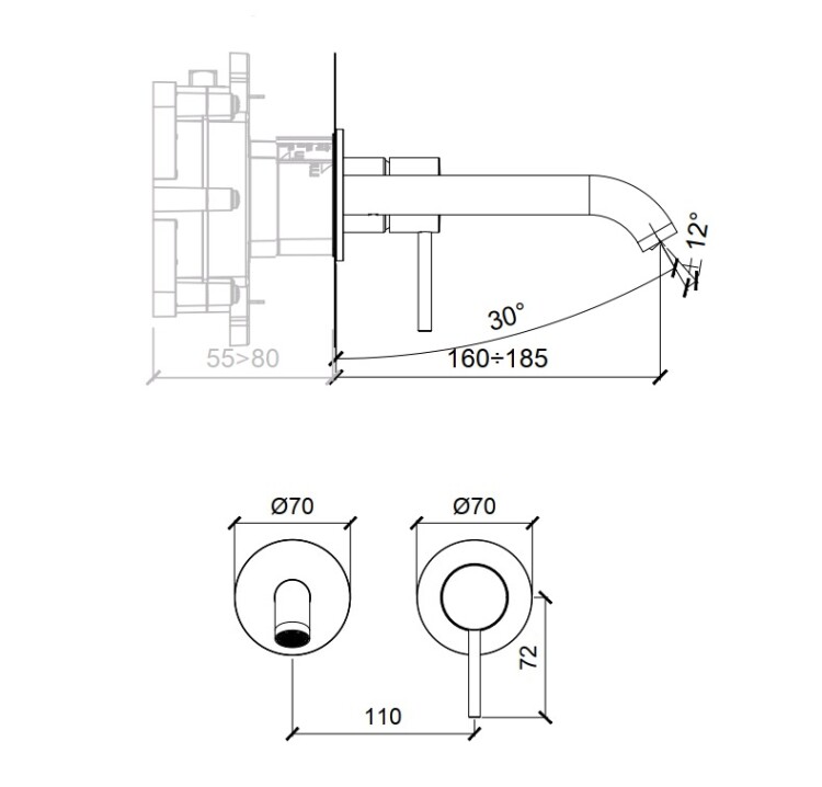 Смеситель для раковины, Almar, тип открывания воды-однорычажный, тип регулирования воды-керамический картридж, монтаж-настенный встраиваемый, отверстия для монтажа-2, высота, мм-70, вынос излива, мм-185, тип излива-неподвижный, донный клапан-отсутствует, тип подводки-жесткая, внутренняя часть-необходимо заказать, цвет-хром Смеситель для раковины, Almar, цвет-хром (Товар заказной, возврату не подлежит)