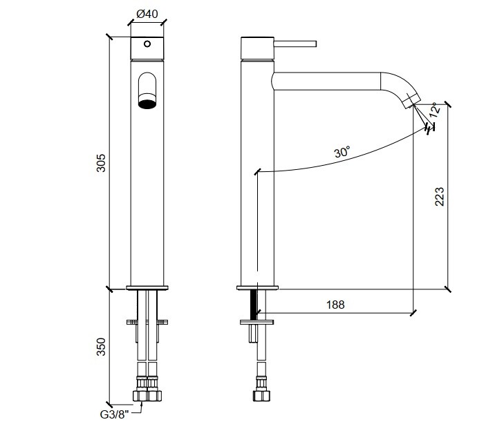 Смеситель для раковины, Almar, тип открывания воды-однорычажный, тип регулирования воды-керамический картридж, монтаж-на раковину/столешницу, отверстия для монтажа-1, высота, мм-305, вынос излива, мм-188, тип излива-неподвижный, донный клапан-отсутствует, тип подводки-гибкая, стандарт подвода воды-3/8", цвет-хром Смеситель для раковины, Almar, цвет-хром (Товар заказной, возврату не подлежит)